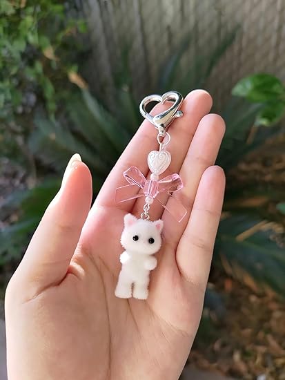 Add a touch of Kawaii charm to your style. This fuzzy kitty keychain features a trendy Y2K heart bow design, making it the perfect aesthetic bag charm for any outfit.