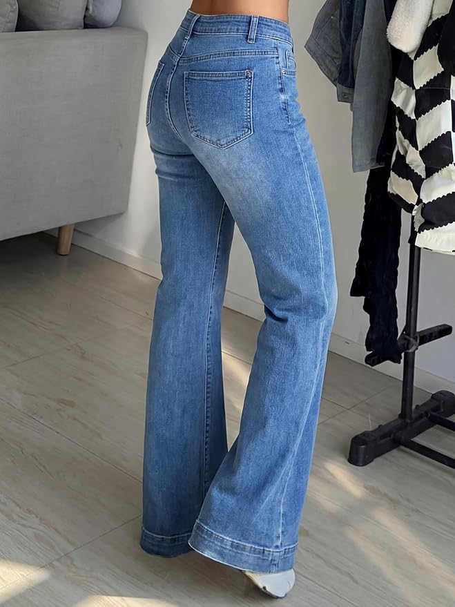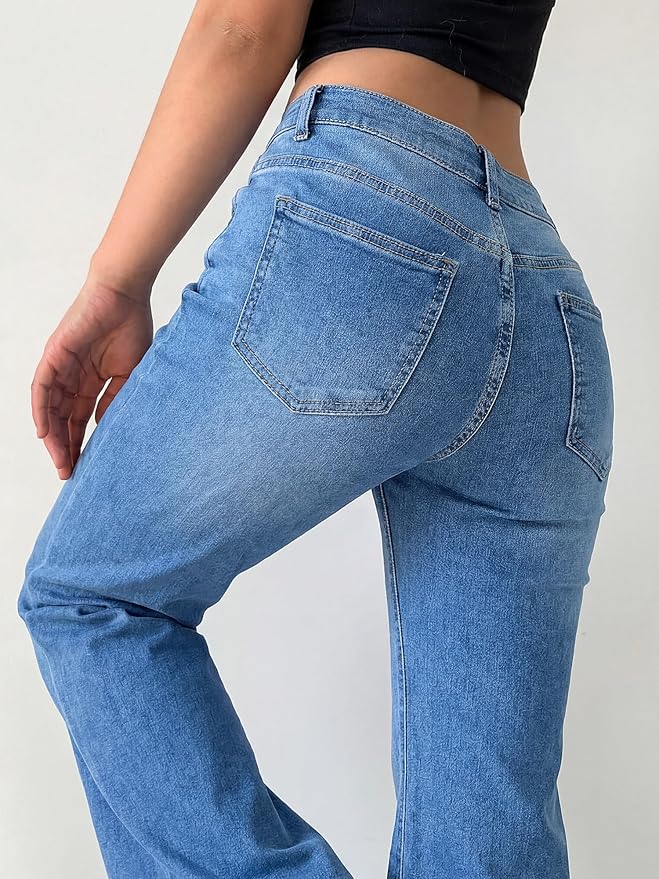 Y2K Flared Bell Bottom Jeans – Stretchy Low Rise Denim